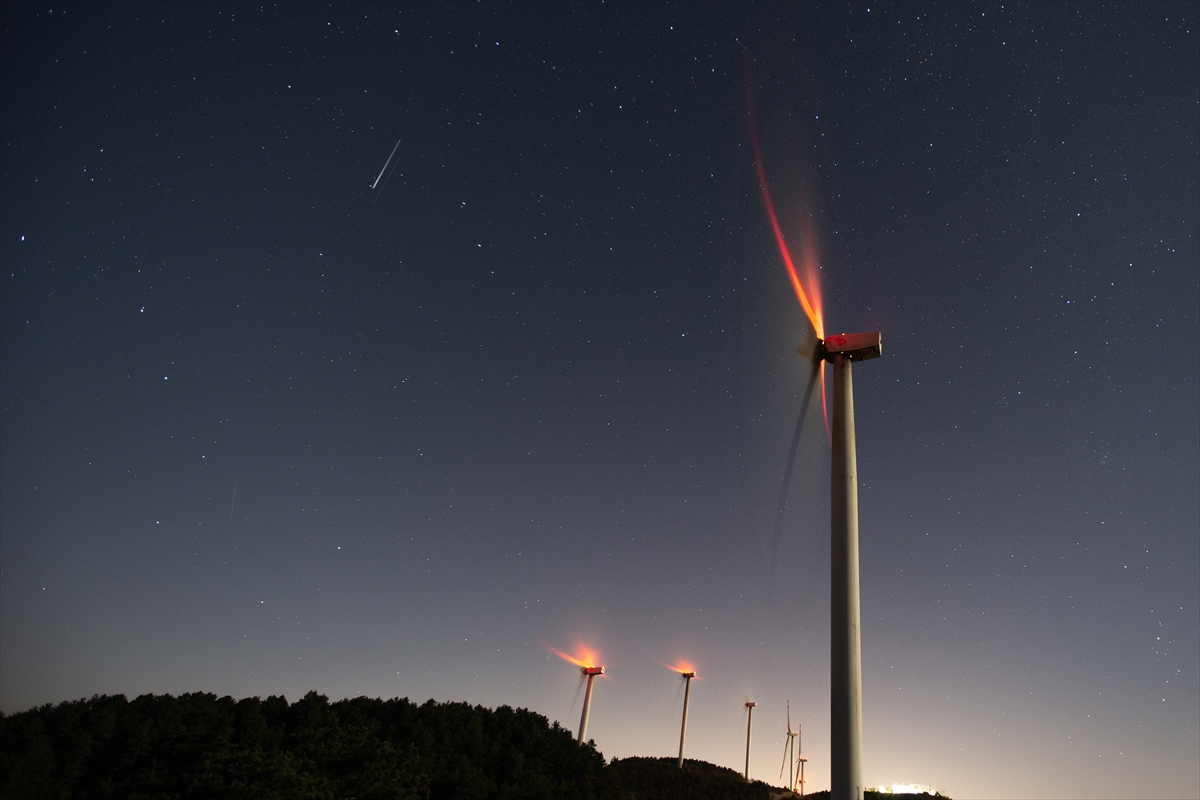 Hatay'ın Belen ilçesi Çerçikaya Mahallesi'ndeki rüzgar türbini bölgesinde Perseid meteor yağmuru gözlemlendi.