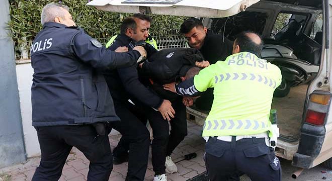 Yaşadığı korku dolu anları anlatan aracın sahibi Turgut Okur, "Benim aracım park halindeydi. Bu şahıs bana doğru yaklaştı. Akli dengesi yerinde değil galiba. Bana, 'Yarın kıyamet kopacak. Benim bu aracı almam lazım' dedi. O anda ben hemen polisi arayıp bilgi verdim. Tam polis olay yerine gelirken, bu şahıs araçla kaçmaya başladı. Yolda giderken trafiği de tehlikeye soktu. En son bu sokakta sıkıştı ve arabaya çarptı. Polis de yakaladı" dedi.