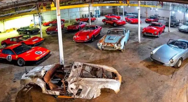 Miami'de bulunan ve 2004'teki Charley Kasırgası sırasında yerle bir olan garajın içindeki 20 antika Ferrari, açık artırma ile satılacak.