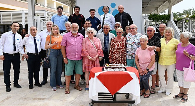 Başkan Topaloğlu ve meclis üyesi Efir, Alman çifte teşekkür plaketi verdi. Başkan Topaloğlu ve beraberindekiler daha sonra Alman çiftle pasta keserek, Kemer’e gelişlerinin 30’uncu yılını kutladı.