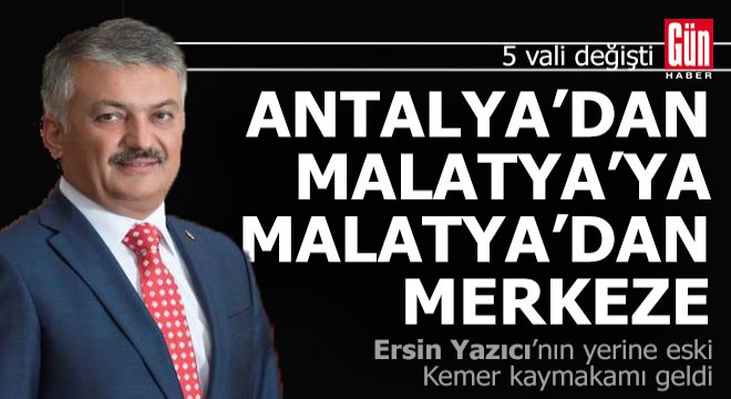 Bir önceki Antalya Valisi Ersin Yazıcı, Malatya'dan merkeze alındı. Görevini ise bir dönem büyükşehir genel sekreterliği yaptığı Kocaeli Valisi Seddar Yavuz'a bıraktı.