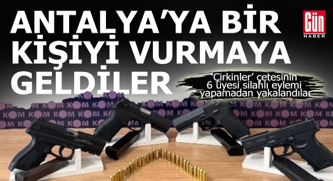 Antalya Emniyet Müdürlüğü Kaçakçılık ve Organize Suçlarla Mücadele Şube Müdürlüğü görevlileri, il dışında birden fazla cinayet, silahlı tehdit, kurşunlama ve uyuşturucu ticareti olayına karışan, 'Çirkinler' olarak bilinen, çıkar amaçlı silahlı suç örgütünün 6 üyesinin kente gelerek, bir vatandaşa yönelik silahlı eylem hazırlığında olduğunu belirledi. Emniyet görevlileri, 6 çete üyesini suçüstü yakalayıp gözaltına aldı. Yapılan operasyon kapsamında 4 silah ile bu silahlara ait şarjör ve fişek ele geçirildi. Adli mercilere sevk edilen 6 şüpheliden 5’i tutuklandı. (DHA)