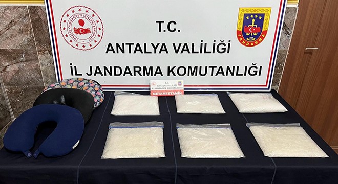Antalya İl Jandarma Komutanlığı İstihbarat Şube Müdürlüğü ve Kepez İlçe Jandarma Komutanlığı ekipleri, B.İ., R.G. ve K.G. isimli şüphelilerin il dışından uyuşturucu madde getireceği bilgisi üzerine operasyon düzenledi. Jandarma, 3 şüpheliyi yakalayıp gözaltına aldı. Şüphelilerin valizlerinde yapılan aramada, boyuna takılan seyahat yastıkları içerisine gizlenmiş 6 kilo 150 gram metamfetamin maddesi ele geçirildi. 3 şüpheli, işlemlerinin ardından çıkartıldıkları adli makamlarca tutuklandı.