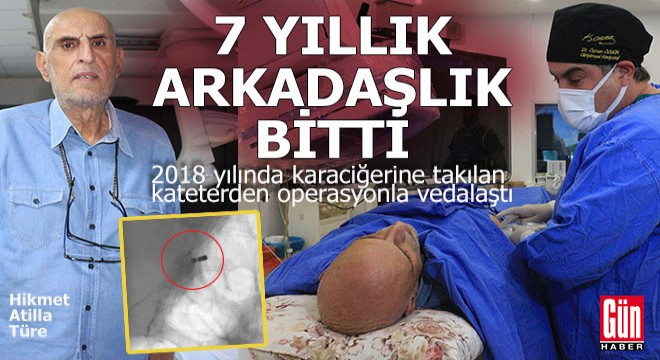Türe'nin 7 yıl kateterle zor şartlar altında yaşamını sürdürdüğünü kaydeden Doç. Dr. Haydar Adanır, "Hikmet Bey, 2017 yılında farklı bir merkezde karaciğer nakli olan bir hastamız. Karaciğer nakli olan hastaların yaklaşık yüzde 20 ila 30'unda ilk 1 yıl içerisinde safra problemleri ile karşılaşabiliyoruz. Safra yollarının dikildiği bölgede darlık söz konusu olabiliyordu. Hastamızda da bu rahatsızlık görüldü. Dışardan kateter takılarak safra dışarı alınıyordu. Girişimsel radyolojide mıknatıs yöntemiyle safra yolunu açtık. Şikayetlerini de ortadan kaldırdık. Kendisi 6 yıldır torba ile yaşıyordu. Sosyal açıdan torba çok büyük bir sıkıntı. Nakilli hastalar için de enfeksiyon riski taşıyor. Hastamızın bu işlemle birlikte böyle bir problemle karşılaşacağını düşünmüyoruz" dedi.