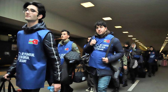 Azerbaycan Gönüllü Kuruluşlar Birliği (AKTİ) tarafından düzenlenen ‘ASAN Gönüllüleri’, ‘Genç Gönüllüler’, ‘BİR Gönüllüleri’, ‘Tarımsal Kalkınma Gönüllüler’, ‘Nahcivan Gönüllüleri’, ‘Büyük Dönüş’ gönüllüleri ve ‘Eko Gönüllüler’ kuruluşlarının üyeleri arasında daha deneyimli ve zor koşullarda çalışmaya hazır olan gençler belirlenerek, Türk meslektaşlarına ve sahada bulunan 747 Azerbaycanlı kurtarıcıya destek vermek amacıyla Türkiye’ye doğru yola çıktığı vurgulandı.