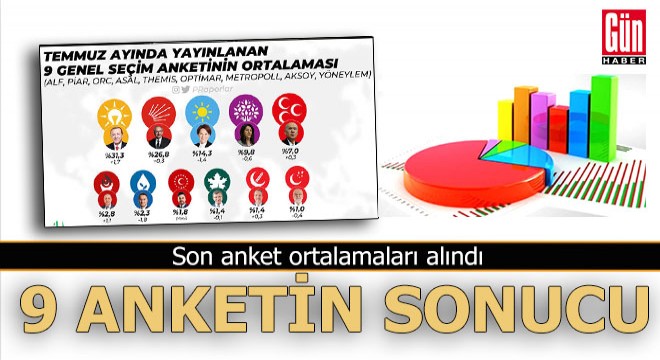 Son olarak ALF, Piar, ORC, ASAL, Themis, Optimar, MetroPOLL, AKSOY ve Yöneylem olmak üzere toplam 9 anket şirketinin temmuz ayında yapmış oldukları araştırmanın ortalaması alındı.