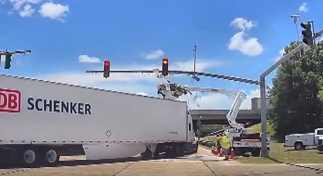 Louisiana eyaletin Livingston Parish bölgesindeki seyir halindeki TIR, sepetli vinç üzerindeyken trafik lambası bakımı yapan elektrik işçisine çarptı. Polis, elektrik işçisinin hafif yaralandığını belirterek hastaneye kaldırılmadığını ve olayla ilgili başlatılan soruşturmanın sürdüğünü duyurdu.