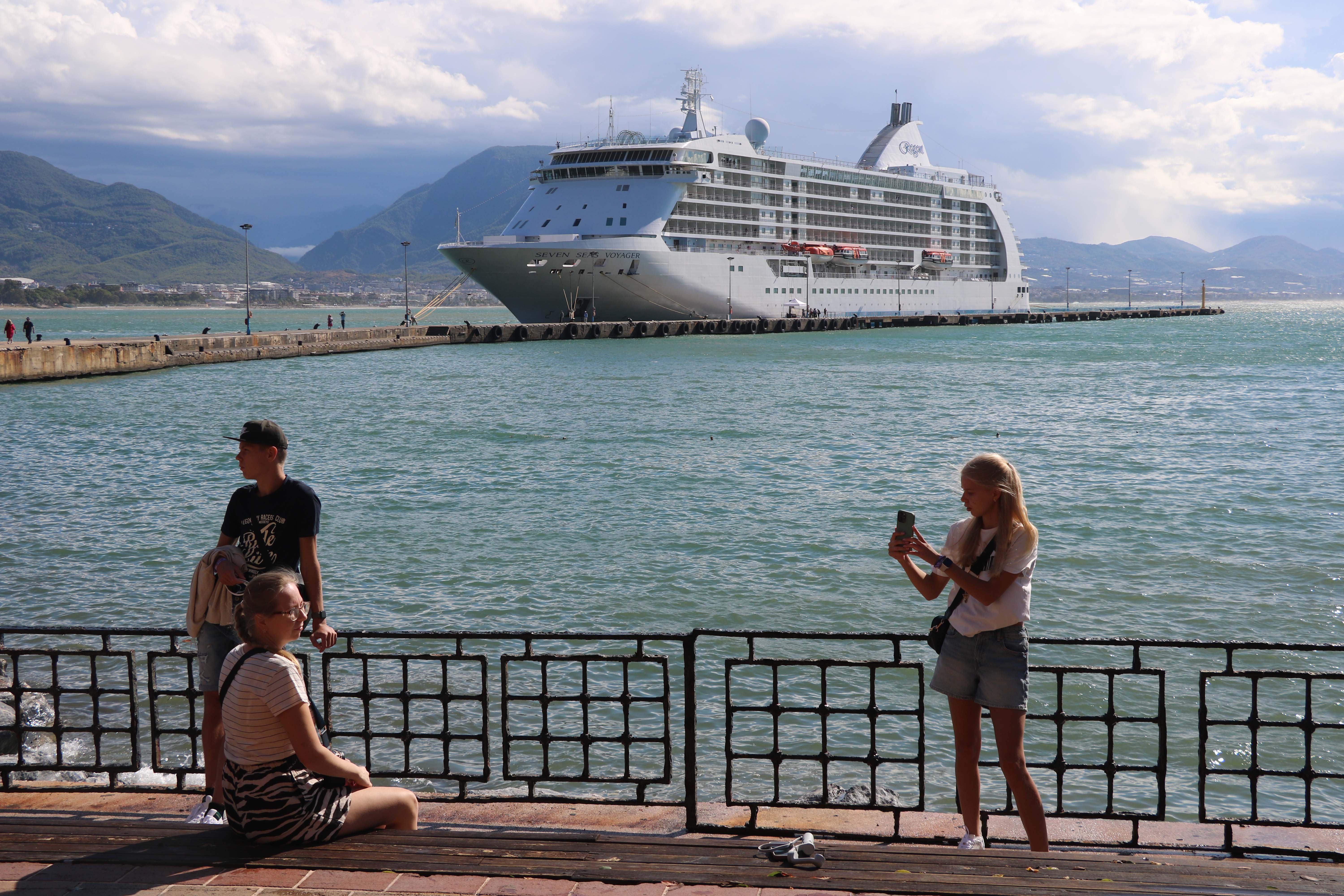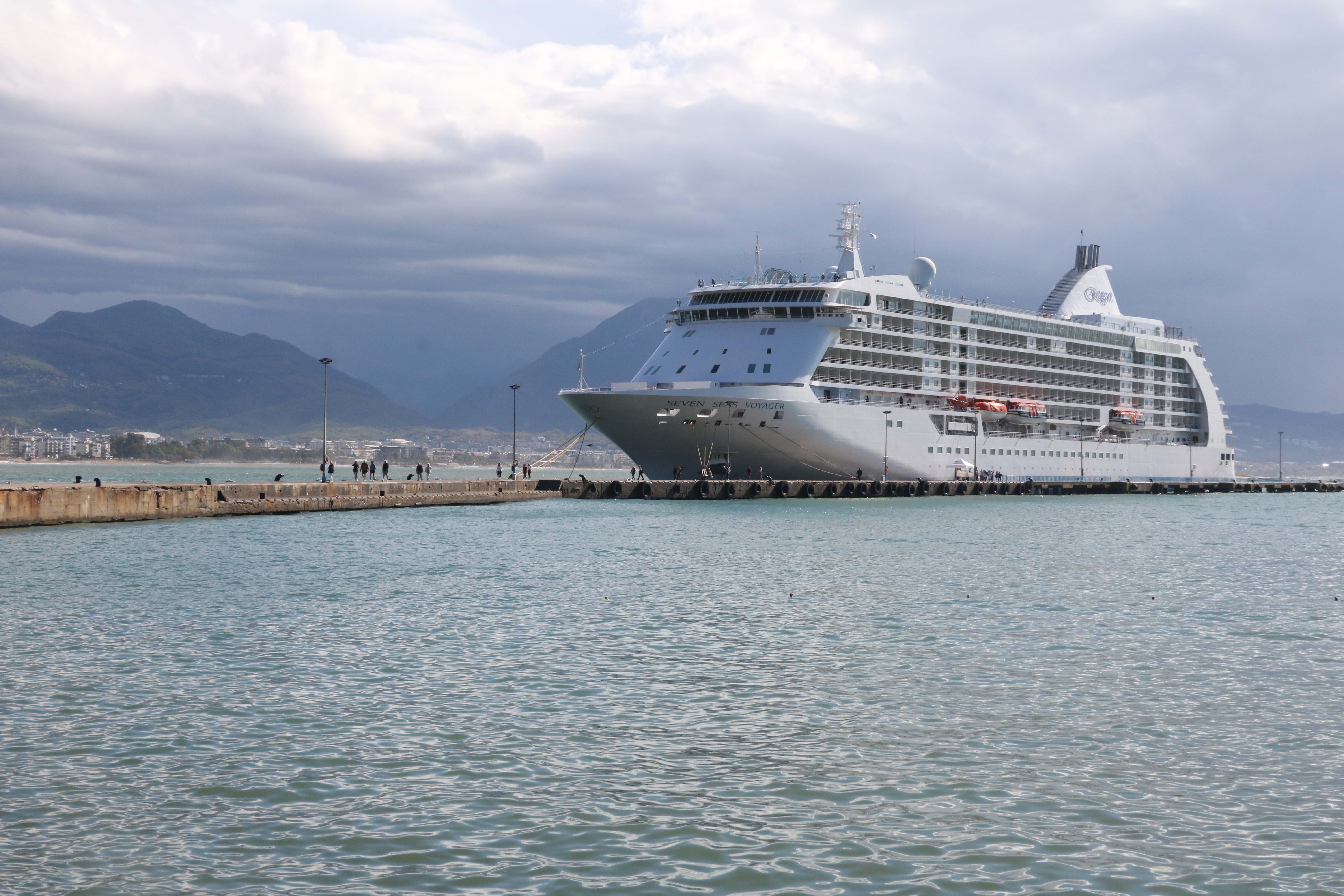 Bahama bayraklı 206 metre uzunluğundaki 'Seven Seas Voyager' adlı kruvaziyer Rodos'tan yola çıktı. Çoğunluğu ABD vatandaşı olmak üzere toplamda 677 turist ve 447 personelin bulunduğu gemi bu sabah Alanya Limanı'na demirledi. Gümrük işlemleri tamamlandıktan sonra turistler gemiden inerek ilçe merkezine dağıldı. Bazı turistler ise tur otobüslerine binmeyi tercih etti. Kruvaziyerin saat 19.00'da Kıbrıs'ın Limasol şehrine gitmek üzere demir alacağı öğrenildi.