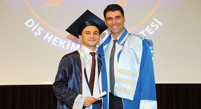 Hocalarının ellerinden mezuniyet belgelerini alan 75 diş hekimi, mesleki yeminlerini etmelerinin ardından gelenekselleşen kep fırlatma etkinliği ile mesleğe ilk adımlarını attı.