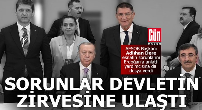 Hazine ve Maliye Bakanlığı ile AK Parti Genel Merkezi'ne esnafla ilgili talepleri iletmek amacıyla bir ziyaret yaptığını belirten AESOB Başkanı Adlıhan Dere, AK Parti'de İl Başkanları Toplantısı olması sebebiyle Antalya İl Başkanı Ali Çetin ile önce Cumhurbaşkanı Yardımcısı Cevdet Yılmaz'la bir görüşme yaptıklarını söyledi. Bu görüşmede esnaf ve sanatkarların güncel sorun ve taleplerini içeren bir dosyayı sunduklarını belirten Dere, “Bu görüşmeyi yaptığımız sırada Cumhurbaşkanımız geldi. Bu konularla ilgili Sayın Cumhurbaşkanı Yardımcımızla ilgili TESK'e gelip, bütün konularımızla ilgili bizi dinlemişti. Bu konulardaki dosyamızı sayın cumhurbaşkanı yardımcımıza teslim ettiğimizi de söyledim. Cumhurbaşkanı Yardımcımız da aynen şunu söyledi, 'Evet Sayın Cumhurbaşkanım sizin talimatınızla Genel Başkan Bendevi Palandöken ve yönetim kurulunu ziyarete gittim, onların sorunlarını, taleplerini dinledim. Başkan Bey de orada söz aldı, konuştu. Bana dosya da teslim etti. Bu konuyla ilgili zaten gerekli bakanlara gerekli şeyleri verdik. Bu konuyla ilgili de çalışmayı başlattık' dedi. Cumhurbaşkanımız da 'Esnafla ilgili konuları, sorunları çözün' dedi. Ben de 'Çok teşekkür ederim Sayın Cumhurbaşkanım' dedim ve bütün esnafımıza da selamlarını iletti" diye konuştu.