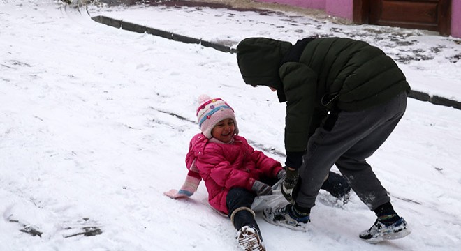 Kent merkezindeki kar yağışı özellikle çocukları sevindirdi. Sokağa çıkmaya izinli oldukları saatlerde mahalle aralarında bazı çocuklar kar topu oynadı, bazıları da ellerine aldıkları poşetleri kızak yapıp karda kaymaya çalıştı.