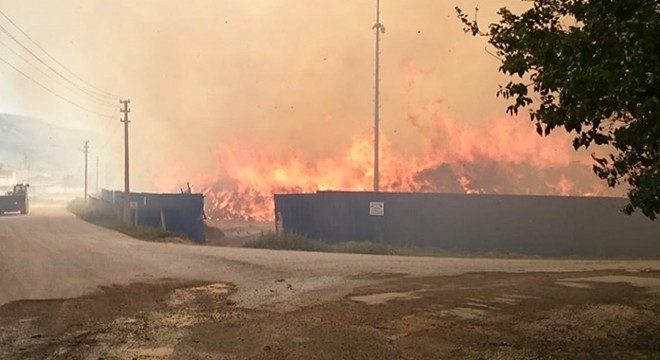 Enerji üretiminde kullanılacak ham maddeleri saran alevlere, itfaiye ekipleri müdahale ederken, tesis çalışanları da destek verdi.