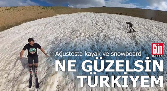Munzur Dağı'nın zirvesinde snowboard yapan Alperen Mazlum, “Munzur sıra dağlarında ağustos ayında bile erimeyen kar kütleleri var. Mükemmel bir deneyim sunuyor bize. Erimeyen kar üzerinde yazın sıcak havalarda keyifli dakikalar geçiriyoruz" dedi.