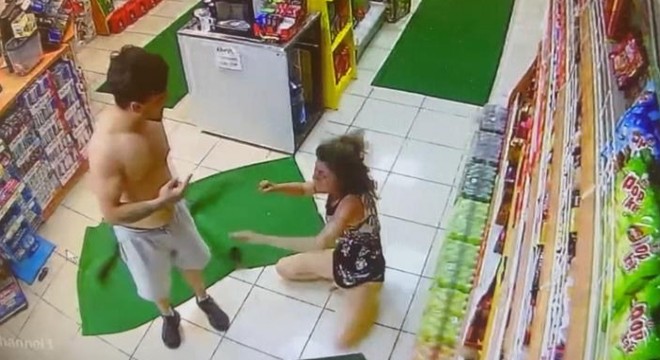 Akaryakıt istasyonundaki şiddet olayı, iş yerinin güvenlik kamerasına saniye saniye yansıdı. Görüntülerde, P.D. pompaların bulunduğu bölümde hafif ticari araçta bulunan bir kişi ile tartışırken gelen bir başka erkek, kadını darbediyor. P.D. akaryakıt istasyonunda bulunan markete girerek korunmaya çalıştığı sırada, ardından gelen kişi, P.D.'ye burada da şiddet uyguluyor. P.D.’nin tüm mücadelesine rağmen uğradığı tekme ve yumruklu saldırısı güvenlik kamerasına saniye saniye yansıdı.
