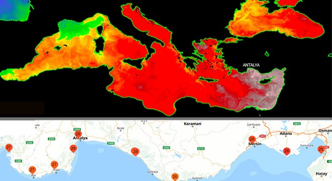 Hatay İskenderun’da 28,8 derece, Antalya Kemer’de 28,5 derece, Antalya Muratpaşa’da 28 derece, Mersin Yenişehir’de 27,6 derece, İzmir Konak, Antalya Alanya ve Aydın Didim’de 27,5 derece, Muğla Fethiye’de 27,4 derece, Antalya Kaş’ta 26,7 derece, Antalya Finike’de 26,6 derece sıcaklık ölçümleri yapıldı. Deniz suyu sıcaklıkları Çanakkale Biga ve İzmir Çeşme'de 26,3 derece, Mersin Anamur'da 25,6, Aydın Kuşadası'nda 25,5 derece, Balıkesir Bandırma'da 25,1 ve Muğla Bodrum'da 25 dereceye ulaştı.