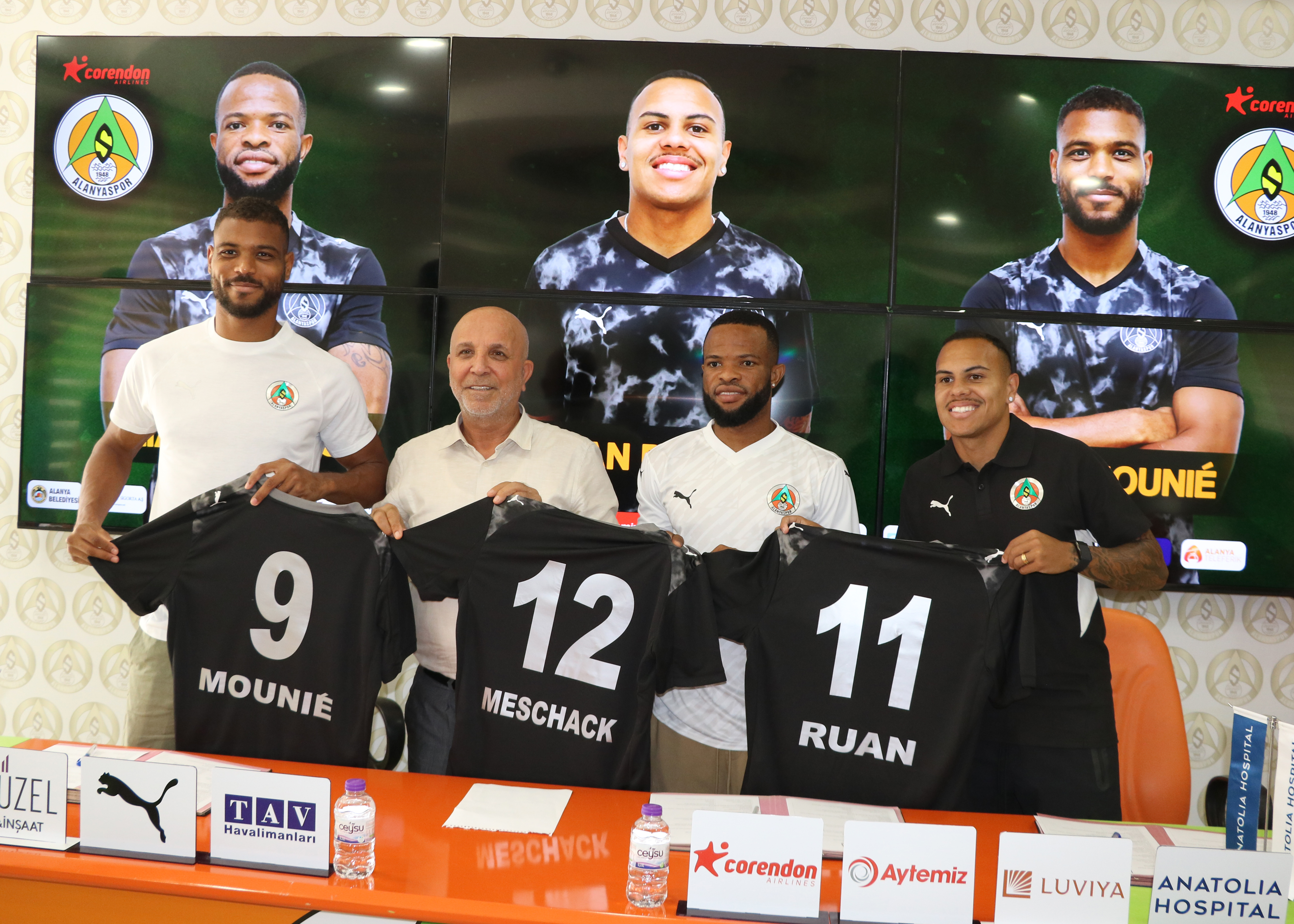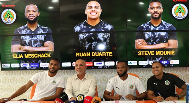 Süper Lig ekiplerinden Alanyaspor, transferin son gününde 3 ismi kadrosuna kattı. Yeni transferler için Alanyaspor Cengiz Aydoğan Kulüp Tesisleri’nde düzenlenen imza törenine Alanyaspor Başkanı Hasan Çavuşoğlu ile yeni transferler katıldı. Young Boys takımından 28 yaşındaki Elia Meschack 3 yıllık, Portimonense’den 20 yaşındaki Ruan Duarte de 5 yıllık sözleşmeye imza attı. Augsburg’dan Beninli milli santrfor 30 yaşındaki Steve Mounie ise sezon sonuna kadar kiralık olarak kadroya katıldı.