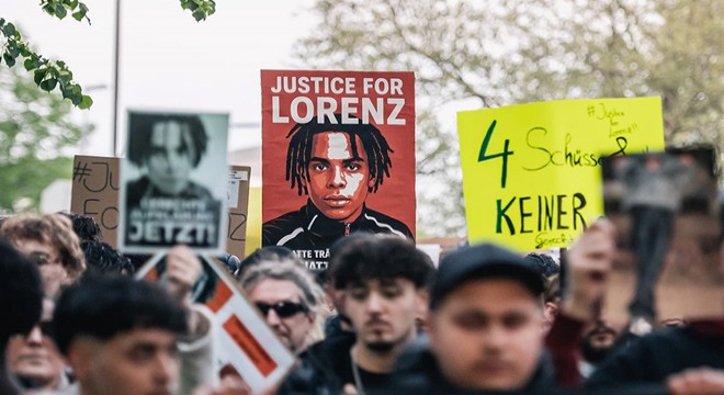 Almanya'nın Oldenburg kentinde, polis tarafından öldürülen 21 yaşındaki siyahi genç Lorenz A. için anma töreni ve yürüyüş düzenlendi.