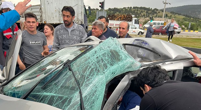 Kaza dün saat 19.00 sıralarında Isparta- Eğirdir karayolu Aliköy kavşağında meydana geldi. Tuncay Şahin T.'nin kullandığı 32 ND 281 plakalı TIR, Emine Dokumacı'nın kullandığı 35 DE 996 plakalı otomobille çarpıştı. Kazayı görenlerin ihbarı üzerine olay yerine sağlık, polis ve itfaiye ekipleri sevk edildi. Kazada otomobil sürücü Emine Dokumacı ile oğlu Ata Dokumacı yaralandı.