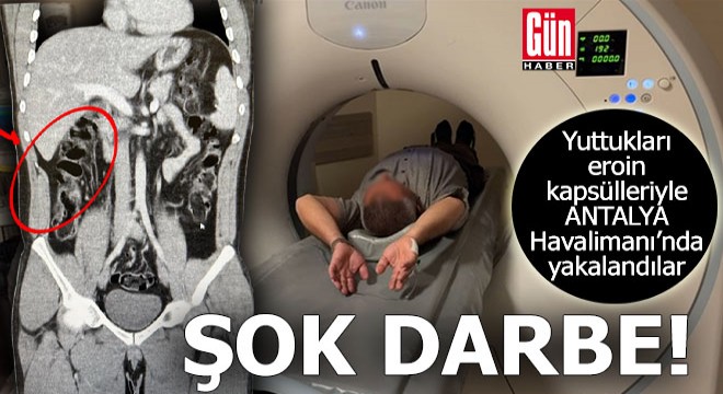 İl Emniyet Müdürlüğü Narkotik Suçlarla Mücadele Şube Müdürlüğü ekipleri, S.S. ve F.M.K. adlı şüphelilerin İran'dan Van'a geçtiğini, yanlarındaki uyuşturucuyu yutarak Antalya'ya geleceğini tespit etti. Şüphelilerin, uyuşturucuyu 'torbacı' olarak tabir edilen uyuşturucu satıcıları aracılığıyla piyasaya sürecekleri bilgisi üzerine ekipler, Antalya Havalimanında S.S. ve F.M.K.'yi yakalayıp gözaltına aldı. Aramalarda üzerlerinde uyuşturucuya rastlanmayan 2 şüpheli, iç muayene için hastaneye götürüldü. Hastanedeki iç beden muayenesinde, 2 şüphelinin, toplam 278 gram 35 kapsül halinde eroini yuttuğu saptandı. 'Uyuşturucu veya uyarıcı madde ticareti yapmak ve sağlamak' suçundan tutuklanan 2 şüphelinin havalimanındaki görüntüleri, muayene edilme anları ve yuttukları kapsüllerin yer aldığı film sonuçları kameralara yansıdı.