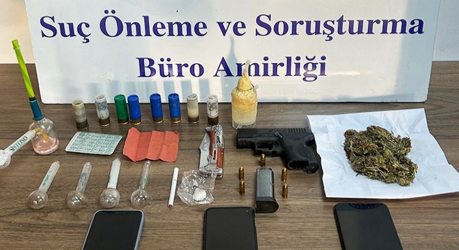 Kemer İlçe Emniyet Müdürlüğü ekipleri Antalya 3. Sulh Ceza Hakimliğinden alınan karar doğrultusunda bugün sabah saatlerinde A.K., M.S., T.Y. ve E.C.'ye ait 5 ayrı adreste eş zamanlı operasyon düzenledi. Şüphelilerin ikametleri, araç ve dijital materyalleri üzerinde yapılan aramalarda el yapımı tabanca, uyuşturucu kullanımına yarayan 6 aparat, 1,20 gram metamfetamin, 25 gram kurutulmuş esrar, 3 cep telefonu, bıçak, farklı ebatlarda 13 fişek, 14 sentetik ecza ve bir miktar uyuşturucu ele geçirildi. Olayla ilgili A.K., M.S., T.Y. ve E.C.'nin yanı sıra Y.S., M.D., E.B. ve Z.B. hakkında da tahkikat başlatıldı.