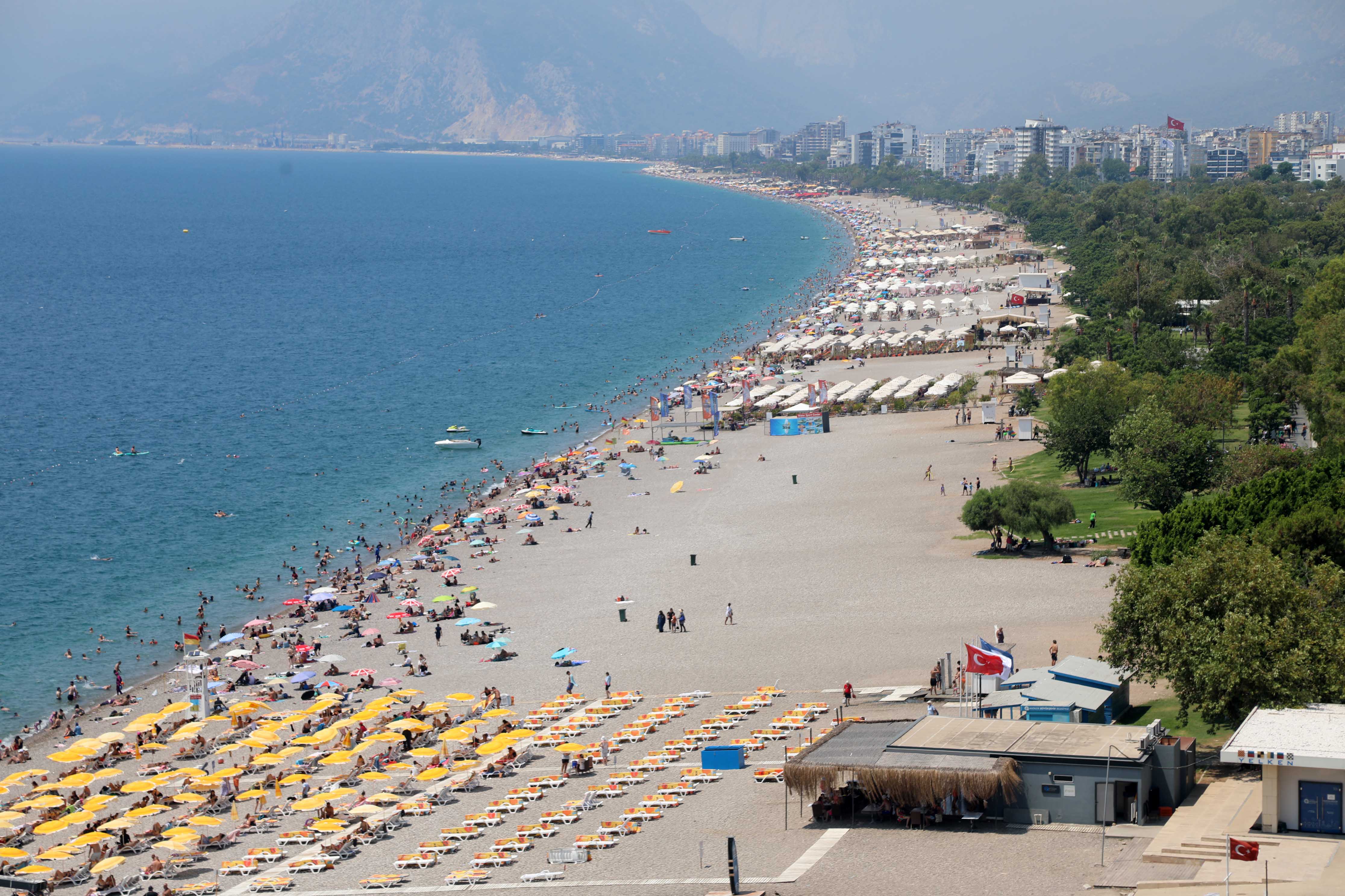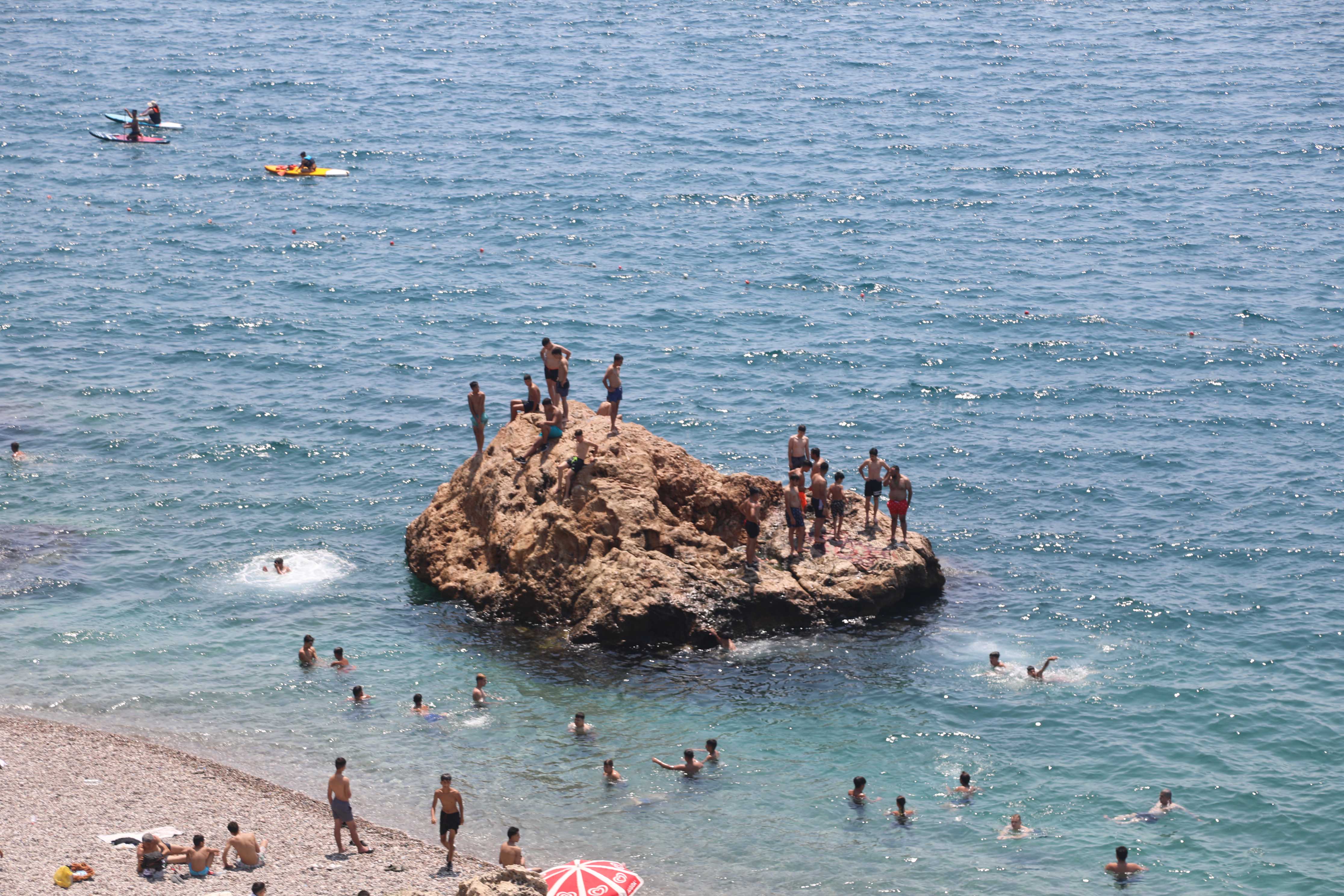 Kentte termometreler 35 dereceyi gösterirken, nem oranı yüzde 80’lere ulaştı. Yaz döneminin ortasına gelinirken Konyaaltı Sahili başta olmak üzere kent genelinde yoğunluk yaşandı. Geçen haftalarda hava sıcaklığında kısa süreli yükseliş yaşansa da yüksek nemle birlikte hissedilen sıcaklık zaman zaman 40 derecelere ulaştı.