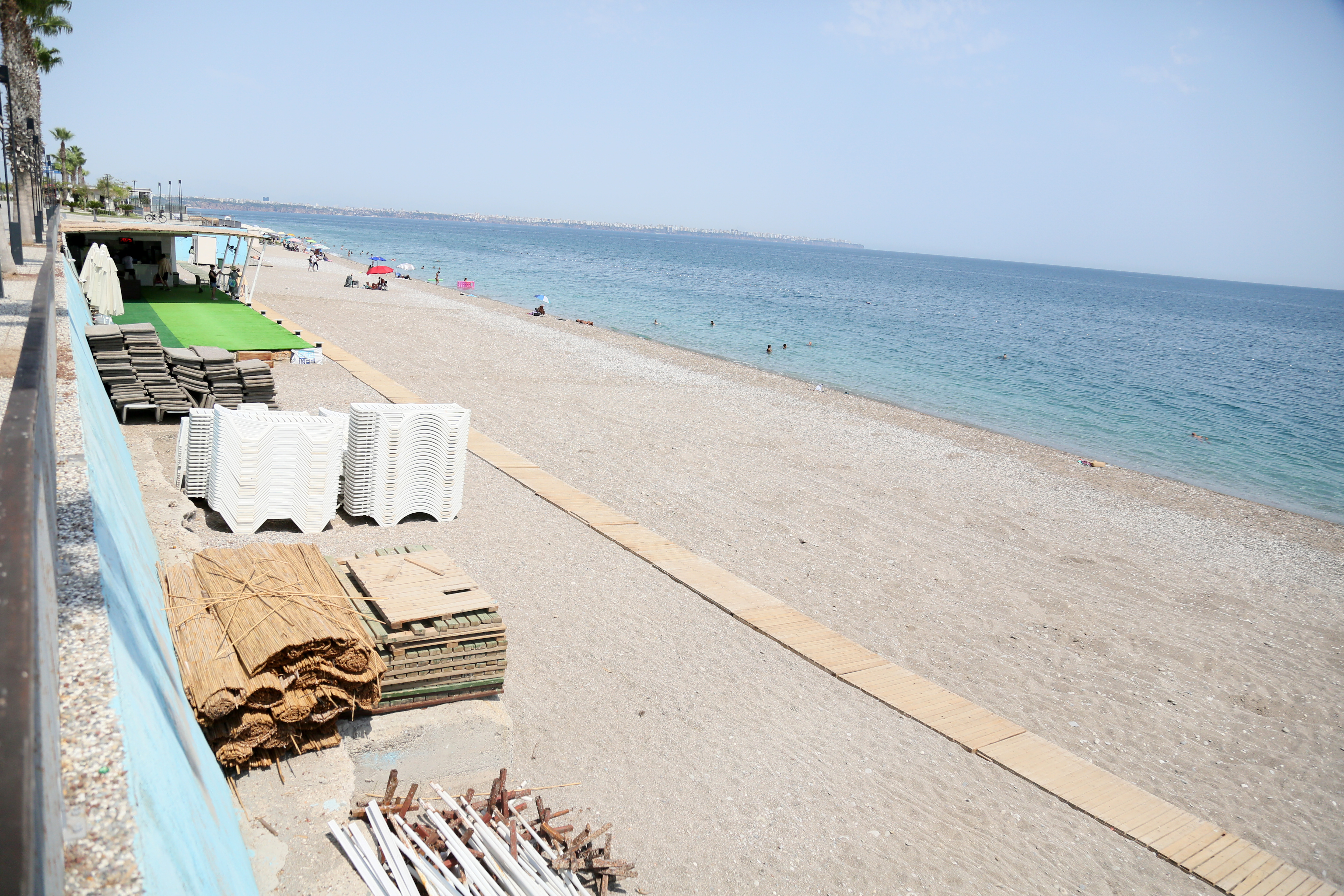 5 büfe ve şezlong yerinden 1'ini Büyükşehir Belediyesi işletirken, 4'ü ise özel firmalara kiralandı. Ağustos ayı başından itibaren bu firmaların büfeleri etrafına yaptığı gölgelikler ile kumsal kısmına konulan masa-sandalyelerin, sözleşmeye aykırı olduğu gerekçesiyle kaldırılması istendi. Belediyenin kararı üzerine büfelerdeki gölgelikler ve masa-sandalyeler, büfe işletmecileri tarafından kaldırıldı. Bir işletme ise büfeyi tamamen kapatarak sahili terk etti. Ayrıca sahil bandındaki beş yıldızlı bir otelin kumsaldaki şezlongları da toplatıldı.
