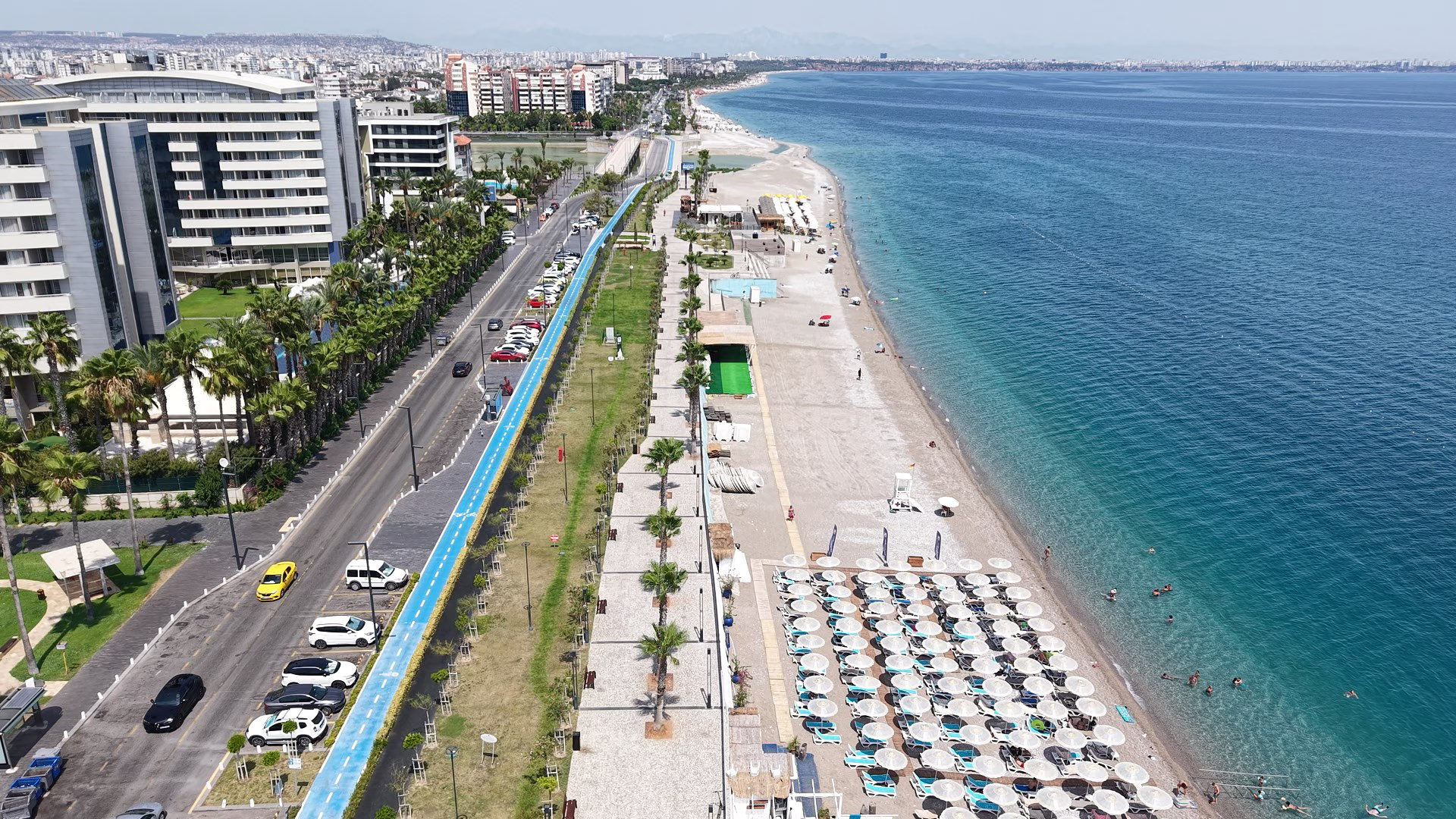 Antalya Büyükşehir Belediyesi'nin Boğaçayı Köprüsü ile Liman arasında 1 kilometre uzunluğundaki 2'nci Etap Konyaaltı Sahil Projesi kapsamında, geçen yıl 200 milyon TL yatırım bedeliyle yapılan, 23 bin metrekaresi yeşil alan olmak üzere 74 bin metrekarelik alandan oluşan projede, 150 metre arayla 5 büfe ve şezlong yeri, 1'er kilometre koşu ve bisiklet yolu, 370 araçlık otopark ve seyir terasları oluşturuldu.