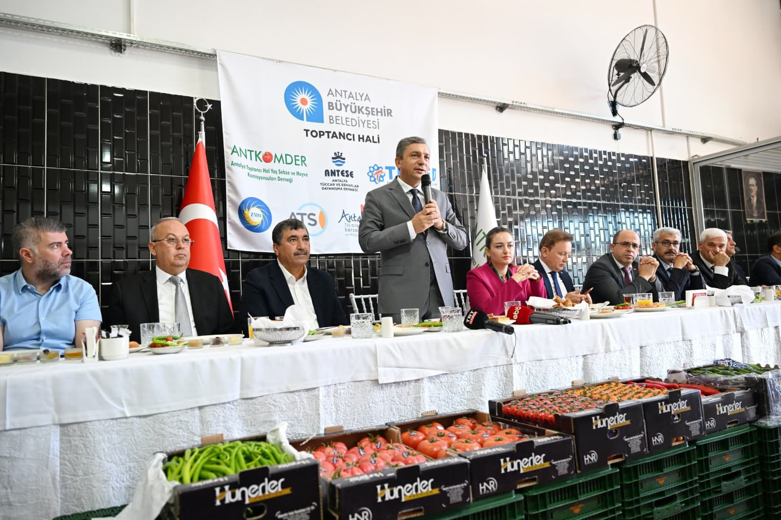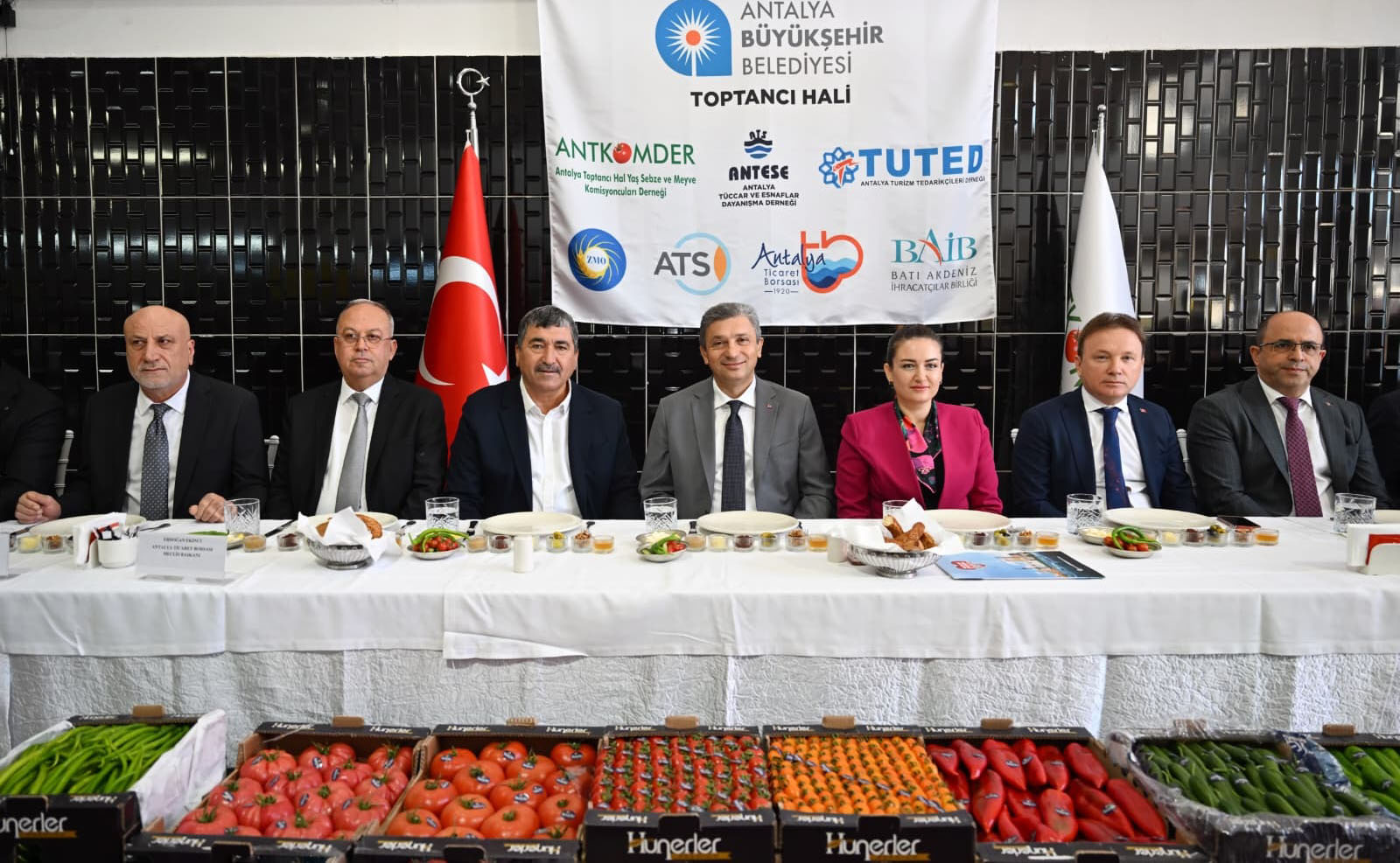 Antalya Büyükşehir Belediyesi Merkez Toptancı Hali’nde; Antalya Valisi Hulusi Şahin, Antalya Büyükşehir Belediyesi Başkan Vekili Büşra Özdemir, Vali Yardımcısı Erol Tanrıkulu, İl Tarım ve Orman Müdürü Şakir Fırat Erkal, Ticaret İl Müdürü Halil Özşahan ve sektör temsilcilerinin katılımıyla yeni sezon öncesi toplantı düzenlendi. Vali Hulusi Şahin, örtü altı tarımın başkenti Antalya'da şehrin tarım sektörünün kalbinin attığı hal esnafını ziyaret etti. Toptancı hallerinin bölge için çok büyük önem arz ettiğini ifade eden Vali Şahin, esnafın taleplerini dinledi.