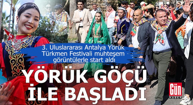 Turizmin başkenti Antalya, Büyükşehir Belediyesi tarafından düzenlenen 3. Uluslararası Antalya Yörük Türkmen Festivali kapsamında gerçekleştirilen Türk kültürünün en önemli simgelerinden biri olan temsili Yörük göçü ile şenlendi. Develer, atlar ve kangal çoban köpeklerinin de yer aldığı Yörük göçünde Türkiye’nin dört bir yanından gelen Yörük dernekleri, Türki Cumhuriyetleri’nden gelen misafirler renkli görüntüler oluşturdu.