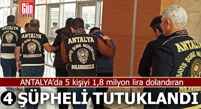 Antalya Emniyet Müdürlüğü Asayiş Şube Müdürlüğü ekipleri, kendilerini Cumhurbaşkanlığında saha irtibat görevlisi, Cumhurbaşkanı danışmanı, MİT Başkanlığında ve devlet dairelerinde yetkili ve makam sahibi kişiler olarak tanıtarak, kurumlarda 'işe alma' vaadiyle dolandırıcılık yapan E.E., F.T, RK. ve A.Y isimli şüphelileri, Antalya merkezli İstanbul ve Ankara'da gerçekleştirilen eş zamanlı operasyonla yakalayıp gözaltına aldı.