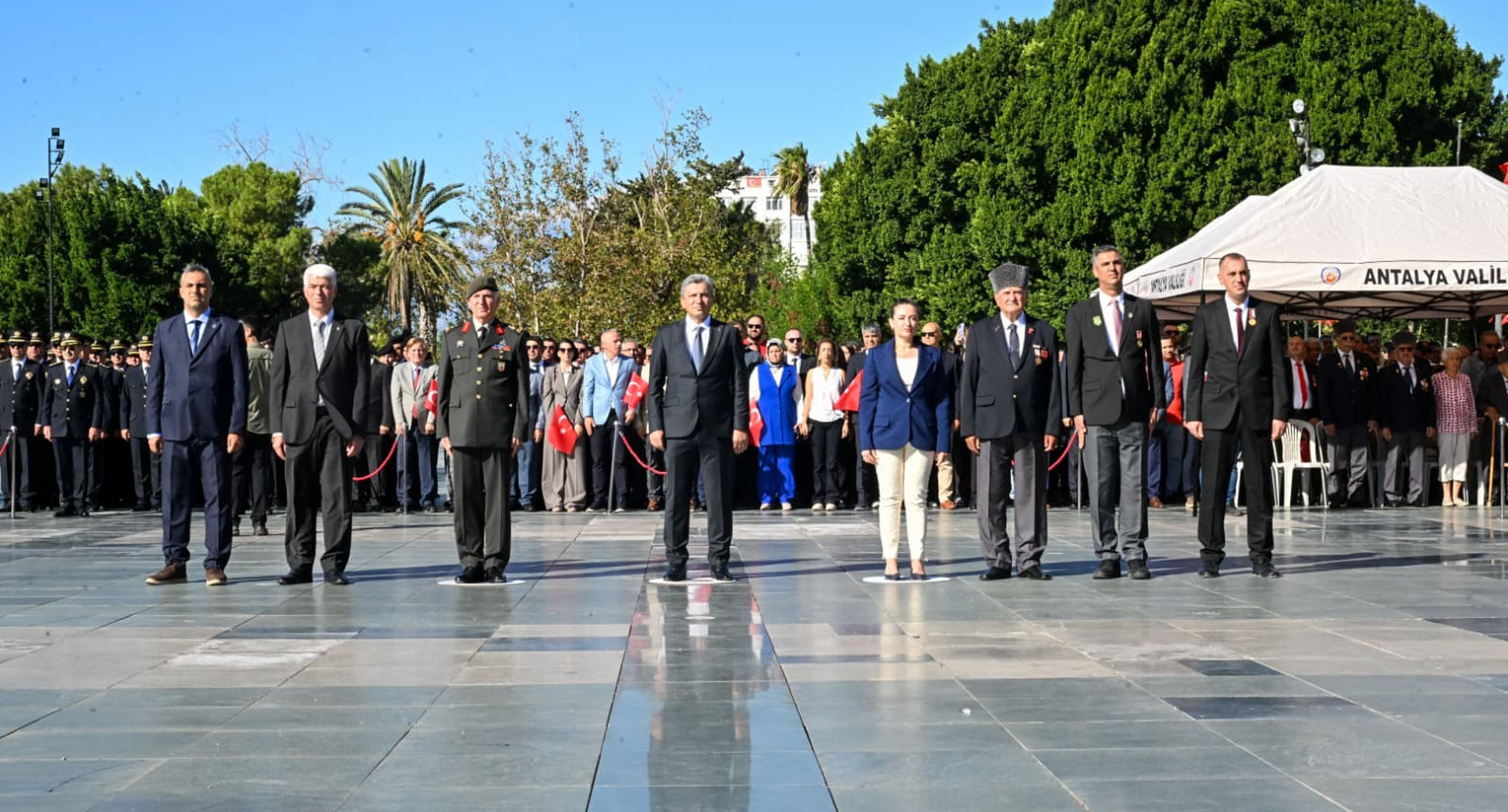 Törende, çelenklerin sunulmasının ardından saygı duruşu ve İstiklal Marşı okundu. 'Benim Gazim' isimli şiirin okunmasıyla devam eden tören, Türkiye Muharip Gaziler Derneği Antalya Şube Başkanı Emekli Albay Zeynel Abidin Sezer’in günün anlam ve önemini belirten konuşması ile sona erdi.