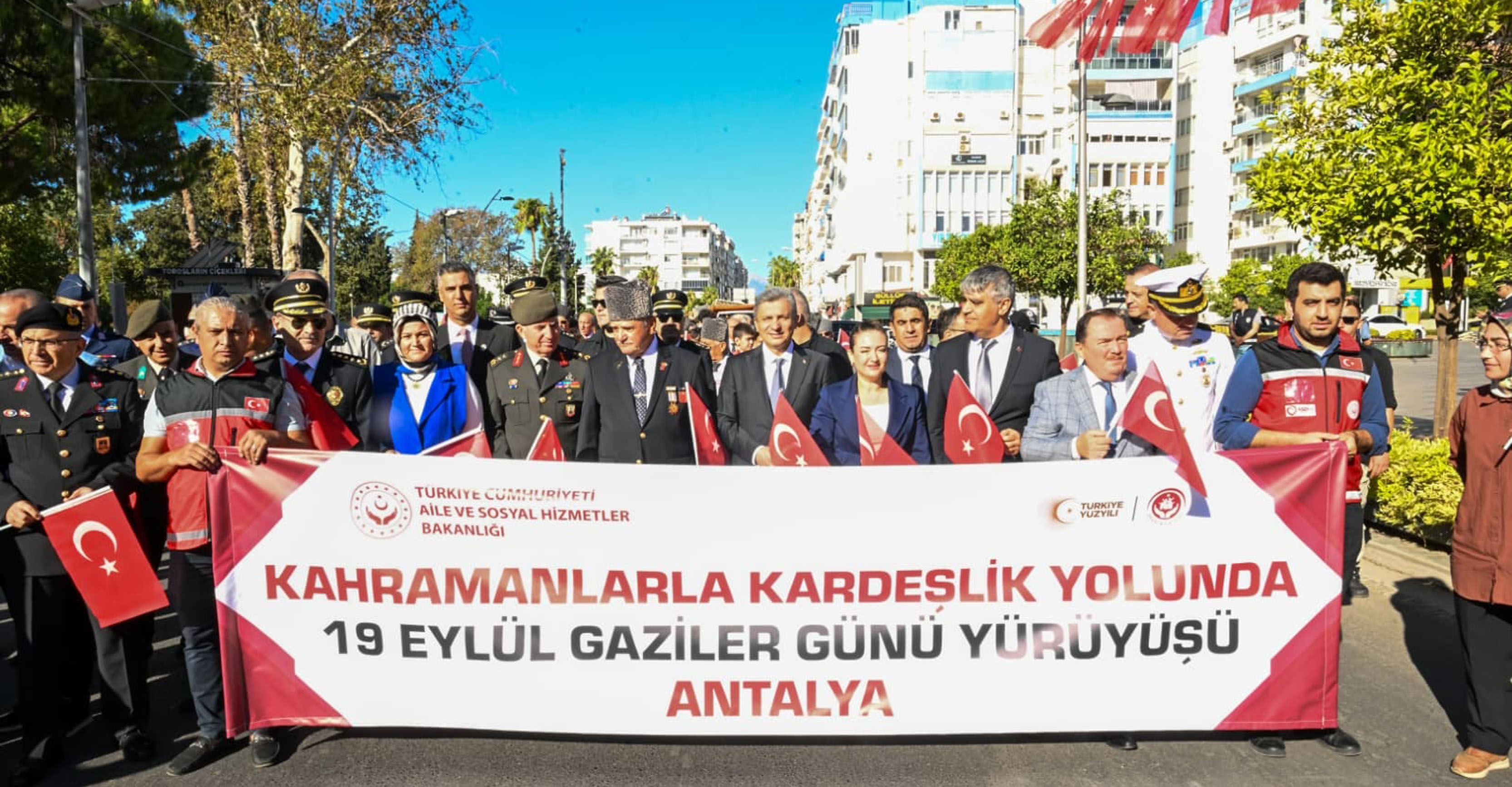 Türkiye Büyük Millet Meclisi tarafından Cumhuriyetin kurucusu Gazi Mustafa Kemal Atatürk'e Gazilik unvanı ile Mareşal Rütbesinin verilişinin yıldönümü olan 19 Eylül Gaziler Günü, Antalya Cumhuriyet meydanında düzenlenen tören kutlandı. Tören, Cumhuriyet Caddesi'nde 'Kahramanlarla Kardeşlik Yolunda Gaziler Günü Yürüyüşü'yle başladı. Cumhuriyet Meydanı'nda bulunan Atatürk Anıtı'na çelenk sunumuyla devam eden törene, Antalya Valisi Hulusi Şahin, Antalya Cumhuriyet Başsavcısı Yakup Ali Kahveci, Garnizon Komutanı Tümgeneral Sinan Eren, Antalya Büyükşehir Belediye Başkan Vekili Büşra Özdemir, Antalya Emniyet Müdürü Sabit Akın Zaimoğlu, Antalya İl Jandarma Komutan Yardımcısı Albay Ali Uslu, Türkiye Muharip Gaziler Derneği Antalya Şube Başkanı Zeynel Abidin Sezer, siyasiler, askerler, güvenlik güçleri, gaziler ve vatandaşlar katıldı.