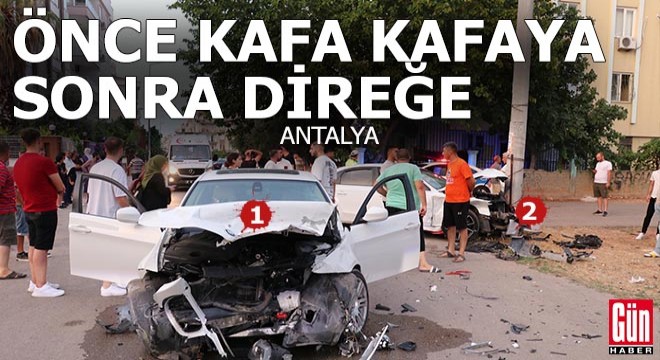 Kaza, dün saat 20.30 sıralarında Muratpaşa ilçesi Kızılarık Mahallesi 2811 sokak ile 2764 sokak kesişiminde meydana geldi. Sürücülerinin isimleri öğrenilemeyen 34 EMF 547 plakalı otomobil ile 07 AOG 578 plakalı otomobil, sokakların kesiştiği noktada kafa kafaya çarpıştı. Çarpışmanın etkisiyle araçlardan biri savrularak sokak üzerindeki elektrik direğine çarptı. Kazayı görenlerin ihbarıyla bölgeye çok sayıda itfaiye ve sağlık ekibi sevk edildi.