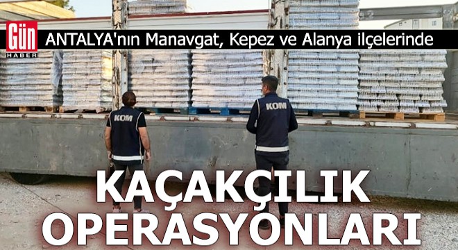 Antalya, Manavgat ve Alanya cumhuriyet başsavcılıkları koordinasyonunda Antalya İl Emniyet Müdürlüğü Kaçakçılık ve Organize Suçlarla Mücadele (KOM) Şube Müdürlüğü ekipleri tarafından gümrük kaçağı ürün sattığı değerlendirilen iş yerlerine operasyon düzenlendi. Operasyonlar sonucunda 15 gümrük kaçağı cep telefonu, 1257 paket gümrük kaçağı sigara, 1682 gümrük kaçağı puro, 35 pipo tütünü, 1641 cinsel içerikli içecek/çikolata, 62 elektronik sigara (puf), 1112 paket elektronik sigara kartuşu, 124 elektronik sigara likidi, 53 litre gümrük kaçağı alkol, 229 bin 152 şişe kaçak alkol, 2 ruhsatsız tabanca ve 20 fişek ele geçirildi. Operasyonlarda gümrük kaçağı ürünlerle ilgili gözaltına alınan 11 şüpheli hakkında '5607 sayılı Kaçakçılık Kanununa muhalefet etmek' suçundan adli işlem yapıldı.