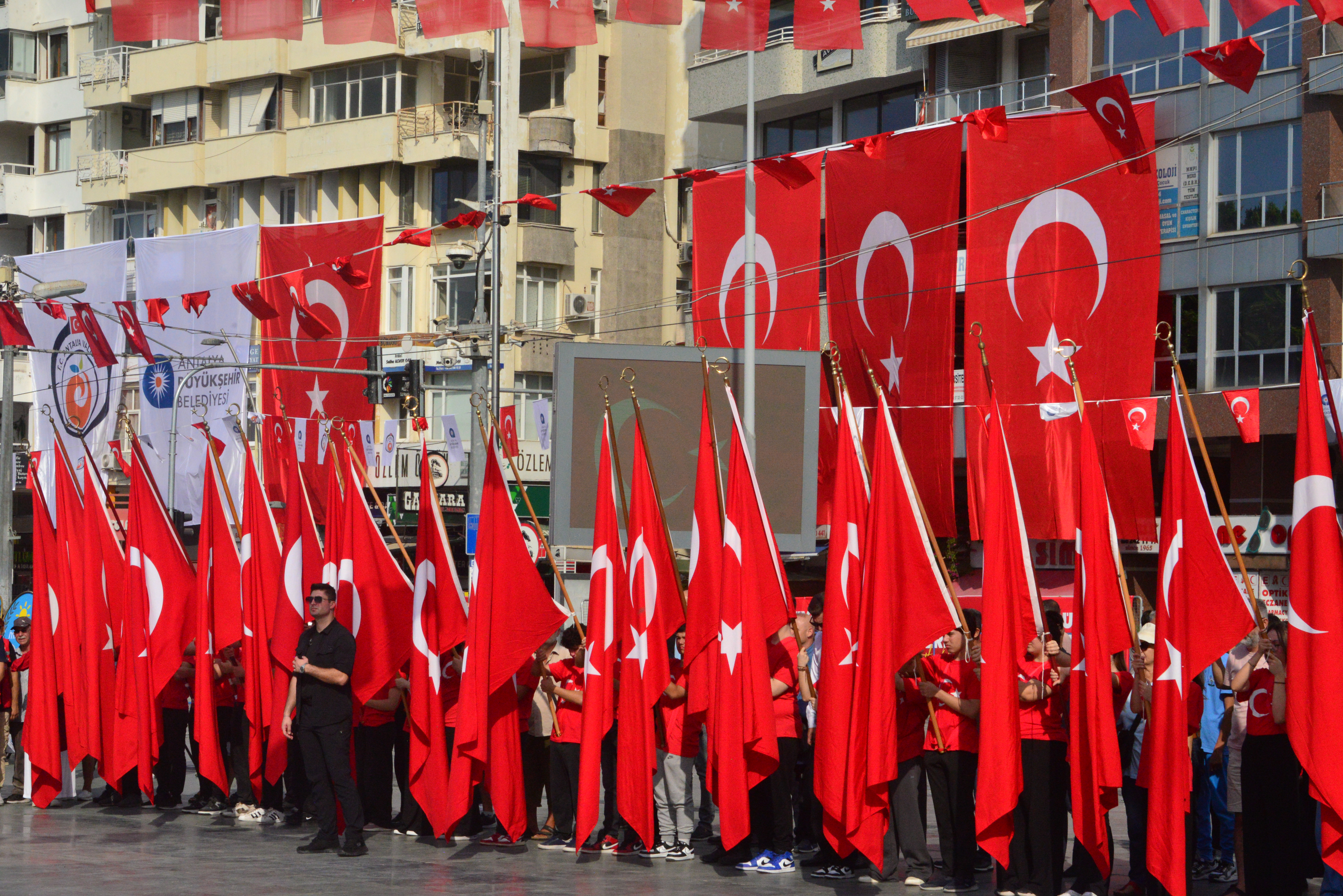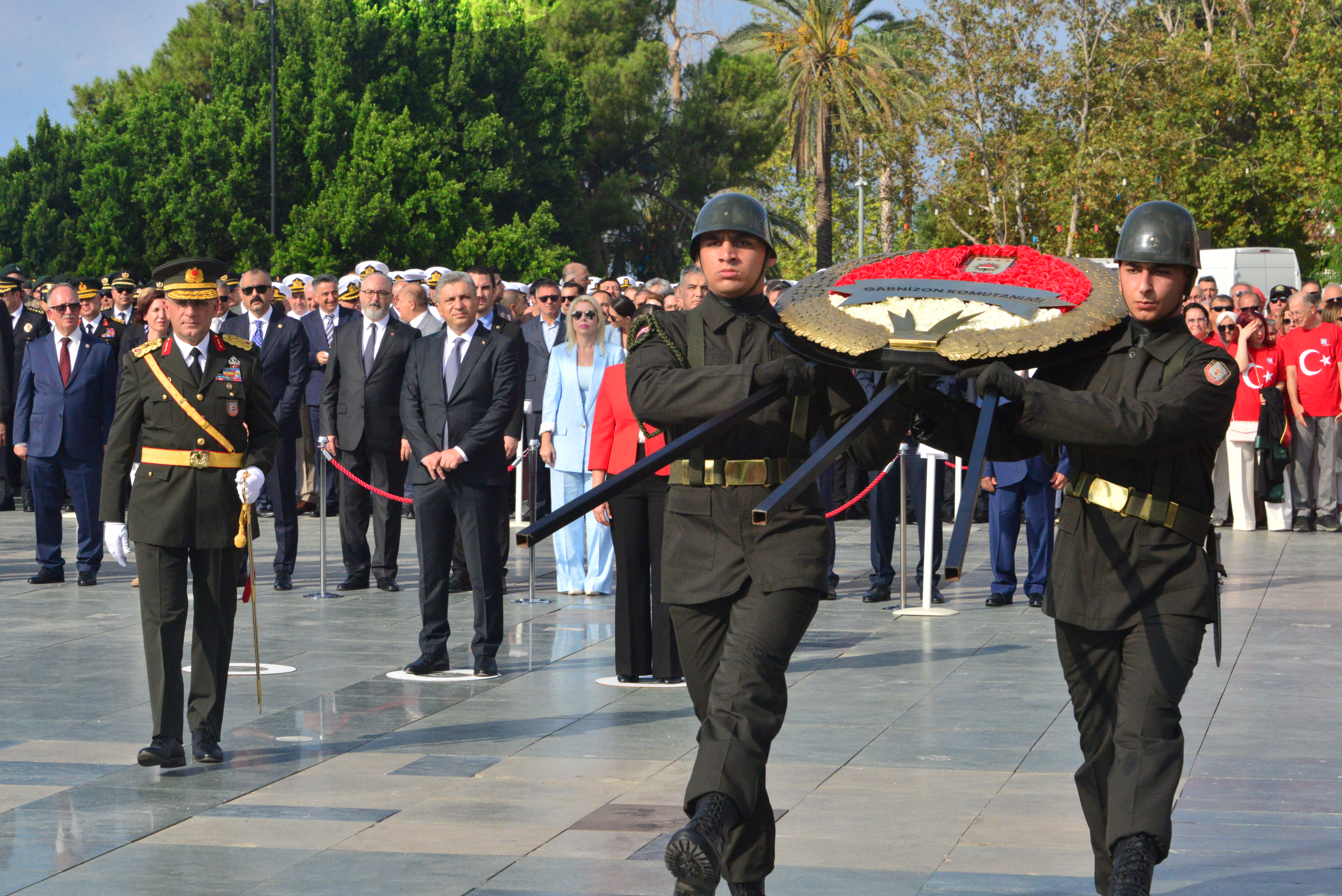 Cumhuriyet Meydanı'nda Antalya Valisi Hulusi Şahin, 30 Ağustos Antalya Garnizon Komutanı Tümgeneral Alparslan Kılıç, Antalya Büyükşehir Belediyesi Başkan Vekili Büşra Özdemir, milletvekilleri, belediye başkanları, kamu kurum ve kuruluş yöneticileri ile askeri erkan, öğrenciler ve vatandaşların katıldığı kutlama töreninde ilk olarak Atatürk Anıtına çelenk sunumu gerçekleşti. Çelenk töreni sonrasında Vali Hulusi Şahin, 30 Ağustos Antalya Garnizon Komutanı Tümgeneral Alparslan Kılıç, Antalya Büyükşehir Belediyesi Başkan Vekili Büşra Özdemir ile Antalya Valiliği'nde tebrikleri kabul etti.