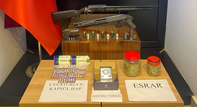 Antalya Emniyet Müdürlüğü Suç Önleme ve Soruşturma Büro Amirliği ekipleri, halkın huzur ve güvenliğini sağlamak, meydana gelebilecek suçların önlenmesini sağlamak, suç ve suçluyu yakalamak amacıyla 4 adrese eş zamanlı operasyon düzenledi. Ekiplerin Muratpaşa ilçe sınırları içerisinde yaptığı operasyonlarda; 2 adet pompalı tüfek, 1 adet ruhsatsız tabanca ve şarjör, 6 adet tabanca fişeği, 8 adet pompalı tüfek fişeği, 330 gram esrar maddesi, 94 adet hap, 1 adet hassas terazi ele geçirirken, 3 kişiyi de gözaltına aldı. 3 şüpheli hakkında adli ve idari işlem başlatıldı.