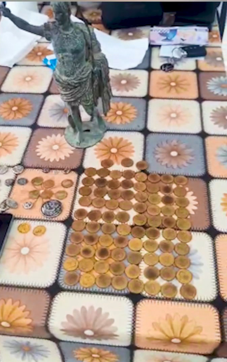 Yapılan aramalarda 2 adet heykel, 108 adet sikke ile cep telefonları ve sim kartları ile suçtan elde edinilen mal varlığı kapsamında şüphelilerden S.Y.'nin 2 milyon 500 bin lira değerindeki aracına el konuldu. Ele geçirilen malzemelerle ilgili yapılan incelemelerde, 7 sikkenin tarihi eser niteliğinde, diğer malzemelerin ise imitasyon olduğu tespit edildi. Adli makamlara sevk edilen 4 şüpheliden 2'si tutuklandı.