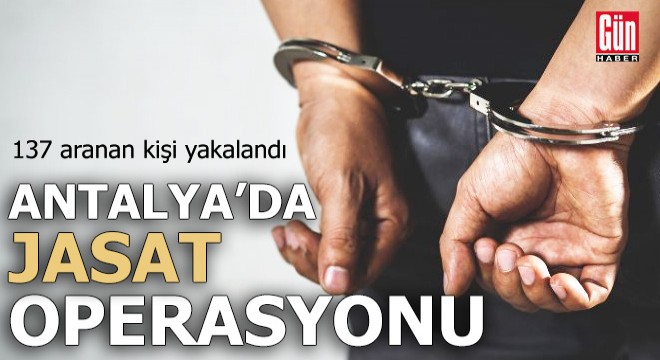 Antalya İl Jandarma Komutanlığınca suçların azaltılması, önlenmesi ve suçluların yakalanmasına yönelik jandarma dedektifleri, Jandarma Suç Araştırma Timlerinin (JASAT) yaptığı çalışmalar neticesinde, farklı suçlardan aranan 10 yıl ve üzeri hapis cezası bulunan 1 şüpheli, 5-10 yıl arası hapis cezası bulunan 8 şüpheli, 0-5 yıl hapis cezası bulunan 19 şüpheli başta olmak üzere, toplam 137 şüpheli yakalanarak adli makamlara teslim edildi.
