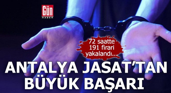 Antalya İl Jandarma Komutanlığınca suçların azaltılması, önlenmesi ve suçluların yakalanmasına yönelik jandarma dedektifleri, Jandarma Suç Araştırma Timlerinin (JASAT) yaptığı çalışmalar neticesinde, farklı suçlardan aranan 10 yıl ve üzeri hapis cezası bulunan 2 şüpheli, 5-10 yıl arası hapis cezası bulunan 13 şüpheli, 0-5 yıl hapis cezası bulunan 18 şüpheli başta olmak üzere, toplam 191 şüpheli yakalanarak adli makamlara teslim edildi.