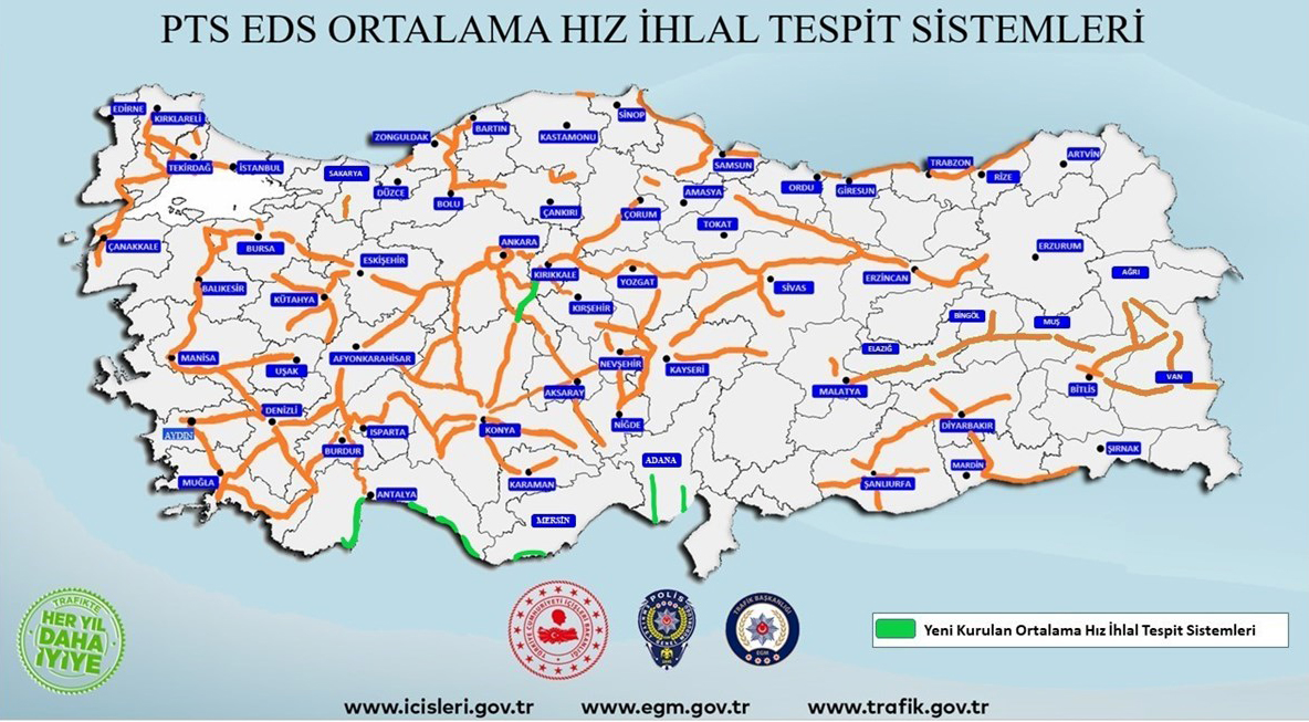 "Trafikte 1 can kaybının bile fazla olduğu ‘Vizyon Sıfır’ ve ‘Güvenli Sistem’ yaklaşımıyla oluşturulan 2021-2030 Karayolu Trafik Güvenliği Strateji Belgesi 03.02.2021 tarihinde 2021/2 sayılı Cumhurbaşkanlığı Genelgesi olarak yayımlanmıştır. Bu doğrultuda, Emniyet Genel Müdürlüğünce şehirlerarası karayollarında kazaların yoğunlukla meydana geldiği güzergâhlarda Emniyet Genel Müdürlüğüne ait mevcut Kent Güvenlik Yönetim Sistemi / Plaka Tanıma Sistemi (PTS) kullanılarak, hızdan kaynaklı trafik kazalarını önlemek ve güvenli trafik akışını temin etmek amacıyla, ‘Ortalama Hız İhlal Tespit Sistemleri’ kurulum çalışmaları devam etmektedir."