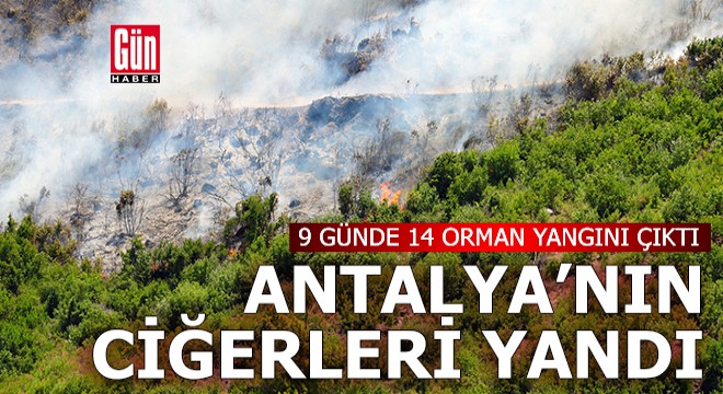 Sıcaklığın mevsim normallerinin üzerinde seyrettiği Antalya'da, 9 günde art arda orman yangını çıktı. Yangınlarda yaklaşık 45 hektar alan ile 5 hektar orman dışı alan zarar gördü. Kentte 22 Haziran'da Kumluca ilçesi Yenikışla Mahallesi civarındaki kırsal alanda çıkıp, ormanı tehdit eden yangında, 2 hektar orman dışı ziraat alan zarar gördü. 25 Haziran'da Kumluca ilçesi Sarıcasu Mahallesi'nde çıkan yangında 1 hektar orman zarar gördü. Aynı gün Finike ilçesi Turunçova Mahallesi yakınlarındaki orman yangınında 2 hektar küle döndü. 27 Haziran'da Alanya ilçesi Mahmutseydi Kızılalan mevkisi ve Aksu ilçesi Kurşunlu Mahallesi ile Yeşilkaraman Mahallesi'nde orman yangını çıktı. Kurşunlu'da 1 hektar, Yeşilkaraman'da 1 hektar, Alanya Mahmutseydi Kızılalan mevkisinde ise 12 hektar orman yandı. 28 Haziran'da Finike ilçesi Turunçova Mahallesi'ndeki orman yangınında 2,5 hektar ormanlık zarar gördü.
