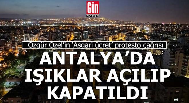 Özel'in çağrısına Antalya'dan destek verildi. Saat 21.00'de bazı vatandaşlar evlerinin ve iş yerlerinin ışıklarını birkaç dakikalığına açıp kapattı. Özellikle Muratpaşa ve Konyaaltı ilçeleri ile Şarampol Mahallesi ve Lara bölgesinde katılımın yoğun olduğu dikkati çekti.