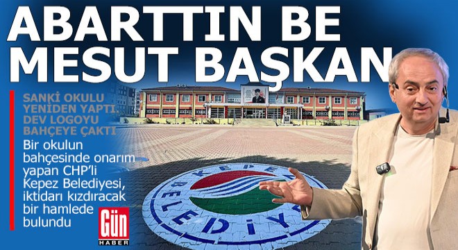 Servis edilen bir fotoğrafta okulun bahçesine yapılan Kepez Belediyesi’nin dev logosu dikkat çekti.