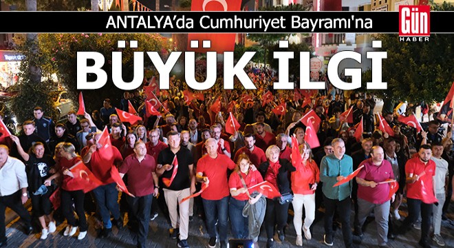 Alanya'da 29 Ekim Cumhuriyet Bayramı coşkuyla kutlandı. Alanya Belediyesi ve Alanya Kent Konseyi tarafından organize edilen programa, Alanya Kaymakamı Fatih Ürkmezer, Alanya Belediye Başkanı Osman Tarık Özçelik, Alanya Kent Konseyi Başkanı Nurhan Özcan, belediye başkan yardımcıları, meclis üyeleri, siyasi parti ilçe başkanları, oda, dernek ve sivil toplum kuruşlarının temsilcileriyle vatandaşlar katıldı. Program, Alanya'nın sporcu gençlerinin meşale taşıma seremonisiyle başladı. Kızılkule önünde bulunan Atatürk Anıtı'ndan meşaleyle çıkan gençler, elden ele meşaleyi devrederek Hükümet Meydanı'ndaki Atatürk Anıtı'na getirdi. Burada meşaleyi Kaymakam Ürkmezer ve Başkan Özçelik devraldı. Cumhuriyet ateşinin yakılmasıyla program devam etti.