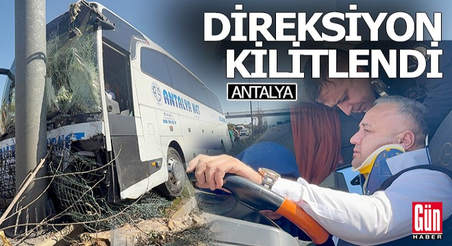 Kaza, saat 11.00 sıralarında Kepez ilçesi Emek Mahallesi Gazi Bulvarı’nda meydana geldi. Alanya'dan aldığı yolcularla İstanbul'a gitmek üzere olan Aydın Doğan idaresindeki 07 BSU 717 plakalı şehirlerarası yolcu otobüsü, direksiyonu kilitlenince refüje çıktı. Yaklaşık 50 metre refüjde sürüklenen ve demir bariyerlerle ağaçları kökünden söken otobüs, EDS direğine çarptı. Otobüs şoförü Doğan, sürücü koltuğunda sıkışırken, araçtaki 3 yolcu ile yedek şoför Tekin Yılmaz kazayı yara almadan atlattı. Çevredekilerin ihbarı üzerine kaza yerine sağlık ve itfaiye ekipleri sevk edildi. İtfaiye ekibi, Aydın Doğan'ı bulunduğu yerden çıkarttı. Doğan ambulansla hastaneye kaldırıldı.