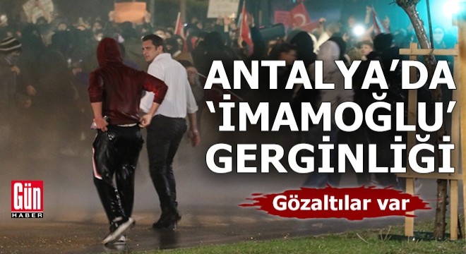 İBB Başkanı Ekrem İmamoğlu'nun tutuklanması, Antalya'da da akşam saatlerinde protesto edildi. Cumhuriyet Meydanında toplanan Antalya Emek ve Demokrasi Güçleri üyeleri, buradaki protestonun ardından yürüyüşe geçti. Akdeniz Üniversitesi kampüsü önüne gelen grup, polisin uyarılarına rağmen kampüs içine girmeye çalışınca müdahale başladı. Polis, havai fişek de atan göstericilere TOMA aracından su sıkarak müdahale etti. Göstericilerden bazıları, TOMA aracı önünde şınav çekti, bazıları da aracın üzerine çıktı. Çevik kuvvet ekipleri, bazı göstericileri gözaltına aldı.
