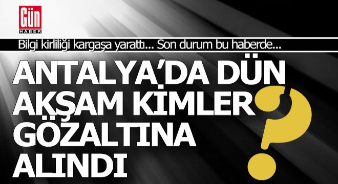 Antalya Büyükşehir Belediyesi'ne yönelik 'rüşvet' soruşturmasının üçüncü dalgasında, dün 3 yeni gözaltı işlemi gerçekleşti. Gözaltına alınan kişilerin, kuyumculuk yapan Kemal A., eski Antalya Büyükşehir Belediyesi başkan vekili ve Gökhan Böcek’in inşaat firması ortağı Metin A. ile eski Antalya Büyükşehir Belediyesi Genel Sekreter Yardımcısı Tuncay S. olduğu bilgisi verildi. Tuncay S.  Gün Haber'e, 'Gözaltına alınmadım' dedi.