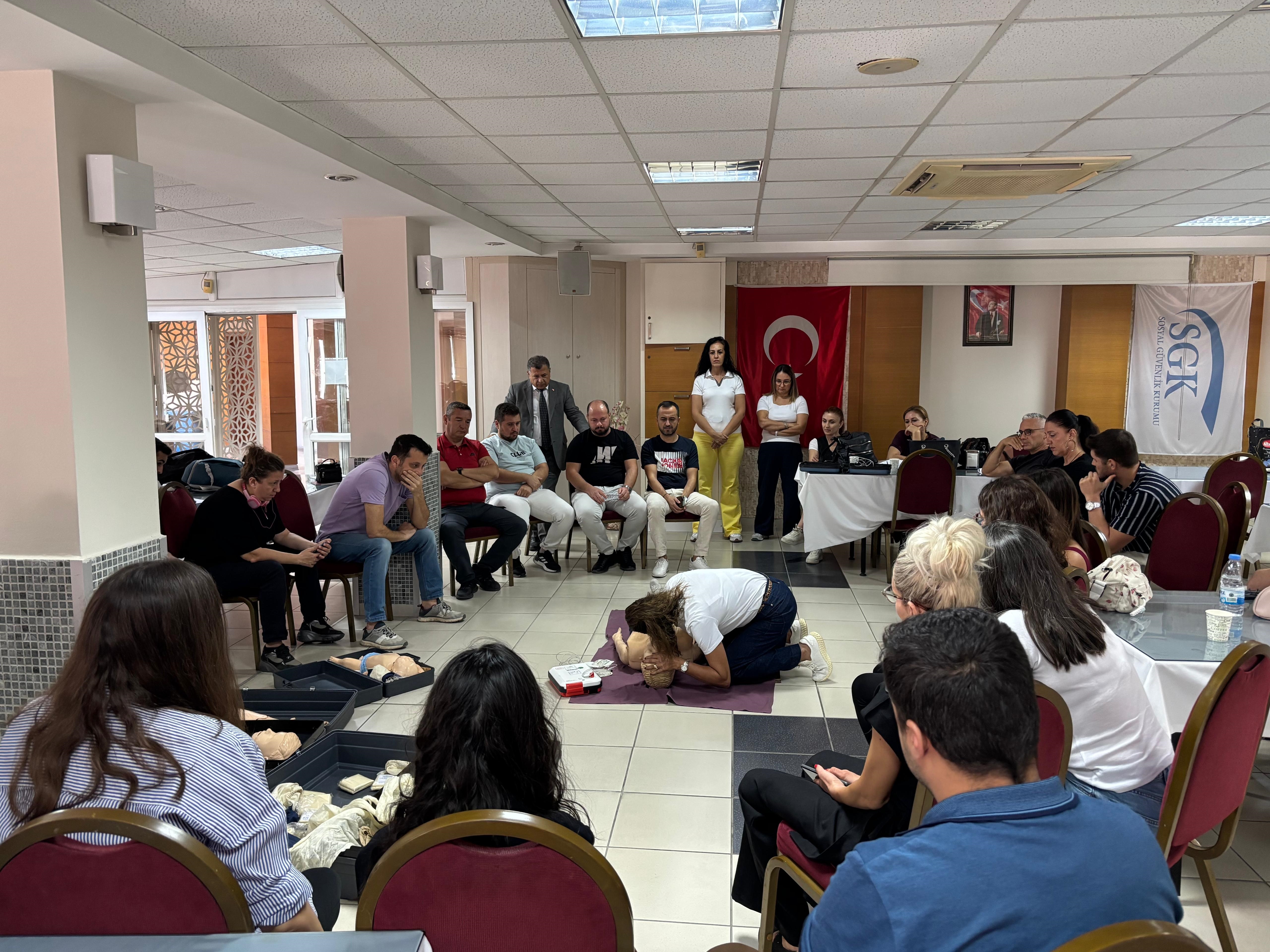 Antalya İl Sağlık Müdürlüğü, Acil Sağlık Hizmetleri Başkanlığı iş birliğiyle 16-17 Eylül tarihlerinde gerçekleştirilen programa, İl Müdürlüğü personeli katıldı. Eğitmenler Nuray Çayır, Selma Yılmaz, Sultan Kocabıyık, Rahime Ertürk ve Gültekin Gezer tarafından verilen eğitimde, katılımcılara temel ilk yardım bilgileri hem teorik hem de uygulamalı aktarıldı. Program sonunda başarılı olan personele İlk Yardım Sertifikası verildi.