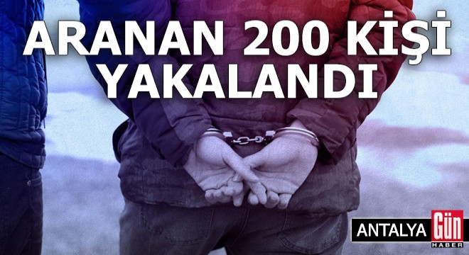 Aralarında kasten yaralama, yağma, hırsızlık, dolandırıcılık, kişiyi hürriyetinden yoksun bırakma, işyeri/konut dokunulmazlığını ihlal etme, 6136 SKM, 5607 SKM, silahla tehdit, hakaret, mala zarar verme, görevi yaptırmamak için direnme, taksirle yarlama/ölüme neden olma, resmi belgede sahtecilik, uyuşturucu madde ticareti bulundurma/kullanma suçlarından arananların da bulunduğu 200 kişi yakalandı. Yakalananların 3'ünün 10 yıl ile 20 yıl arası, 3'ünün 5 yıl ile 10 yıl arası, 21'inin 2 ile 5 yıl arası, 48'inin 2 yıl altı kesinleşmiş hapis cezası ile arandığı belirlendi. Toplam 200 kişi, işlemlerinin ardından adli makamlara sevk edildi.