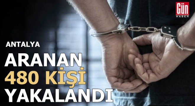 Antalya İl Emniyet Müdürlüğü birimlerince, asayiş ve diğer suçlardan aranan şüphelilerin yakalanmasına yönelik çalışmalar yapıldı. Antalya Emniyet Müdürlüğü Asayiş Şube Müdürlüğü koordinesinde, son 1 haftada gerçekleşen çalışmalarda; hırsızlık, dolandırıcılık, yağma, cinsel suçlar, öldürme ve diğer suçlardan toplam 480 şüpheli yakalanarak adli makamlara teslim edildi.